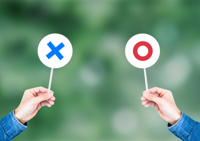 〇と✕を赤と青で色分けするならどっちがいいんでしょうね。